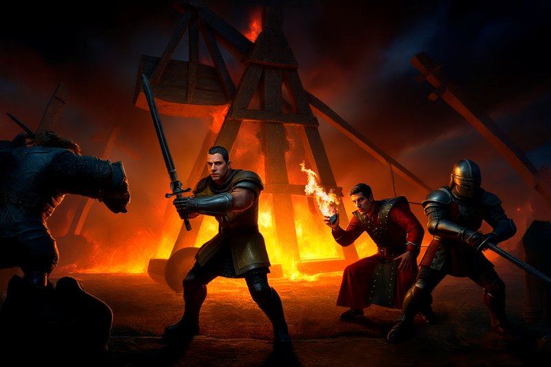 Пока орки пытались понять, что происходит и начали орать тревогу, Мильтен десятком огненных стрел быстро зажёг палатки, внеся ещё большую сумятицу в действия врага и отвлекая шаманов на борьбу с этим огнём. Основная задача была лишь одна – сжечь катапульту. Именно потому лорд Гаронд отправил его с этой штурмовой группой самоубийц, осознавая, что может потерять один из ценнейших инструментов, способствовавших выживанию в осаде, сдерживающий возможность пожаров, помогающий раненым. Но, ничего другого не оставалось, ведь никаких запасов зажигательной смеси у них не было, да и самогонного спирта было бы явно недостаточно, его попросту не из чего было бы произвести, да и не успеть в нужном количестве… Гарнизон и так уже сидел на урезанном на треть пайке.