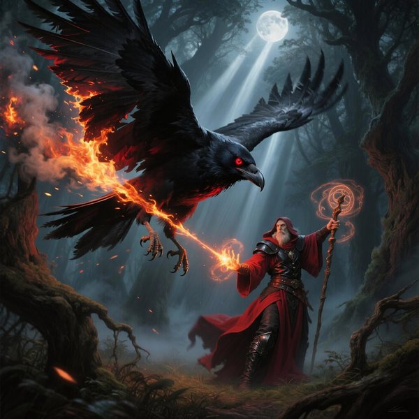 С ветки дуба раздалось яростное карканье. Райвен видел, как пали его лучшие охотники. Гнев, холодный и всепоглощающий, затмил всё остальное. Он расправил крылья, и лес ответил ему на зов.