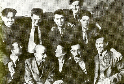 Участники I совещания молодых писателей: М. Луконин, В. Урин, В. Захарченко, А. Межиров, В. Тушнова, С. Гудзенко, П. Антокольский (руководитель семинара). Москва. 1947 г.