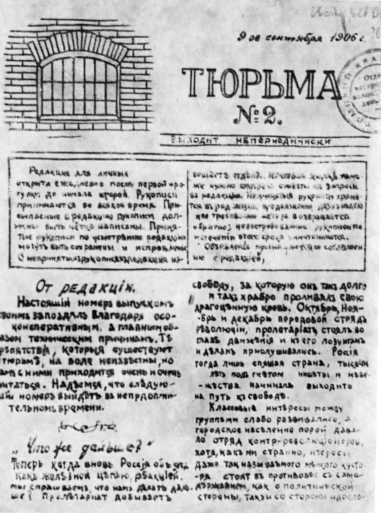 Заглавный лист второго номера журнала «Тюрьма». Журнал нелегально издавался при участии Кирова-Кострикова. Томск, 1906. Уменьшено.