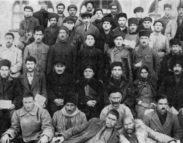 Среди секретарей сельских партъячеек. В центре (слева направо): Р. А. Ахундов, Киров, С. М. Эфендиев. Баку, 20-е годы.