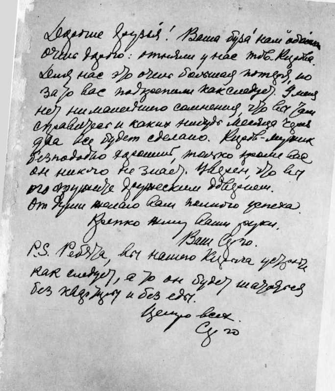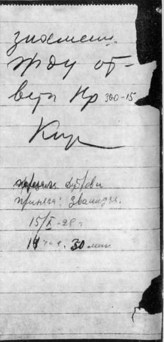 Записка Серго Орджоникидзе, посланная им в Ленинград. Москва, 1926. Автограф.