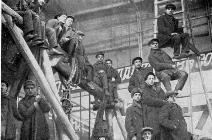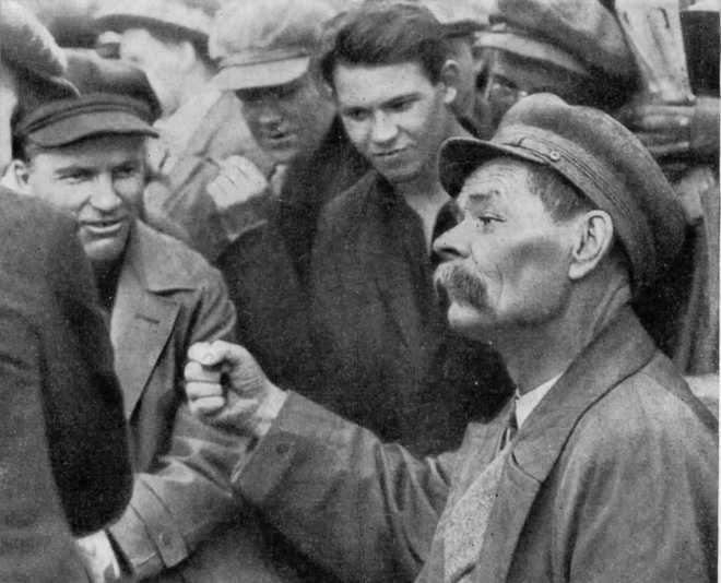 Рабочие слушают Кирова, выступающего в одном из цехов «Красного путиловца». Ленинград, 1933.