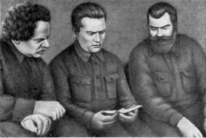 М. С. Чудов (слева), Киров и П. И. Струппе. Ленинград, 1933.