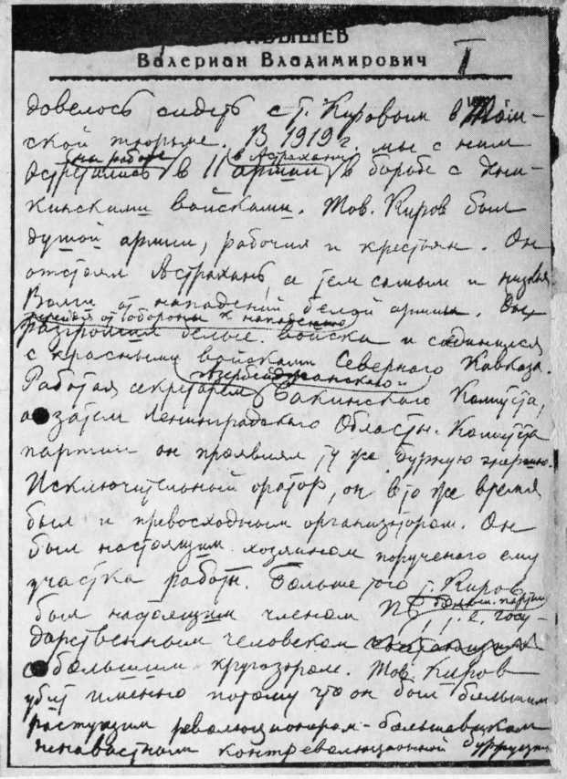 Вторая страница статьи В. В. Куйбышева памяти Кирова. Ташкент, 2 декабря 1934 года. Автограф.