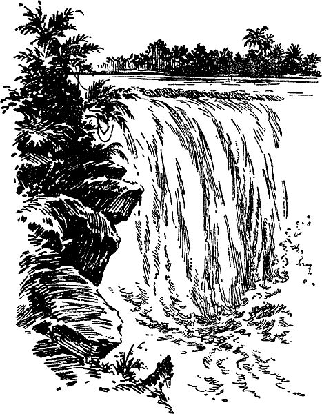С высоты около 40 метров низвергались могучие потоки воды, разнося далеко по окрестностям оглушительный шум.