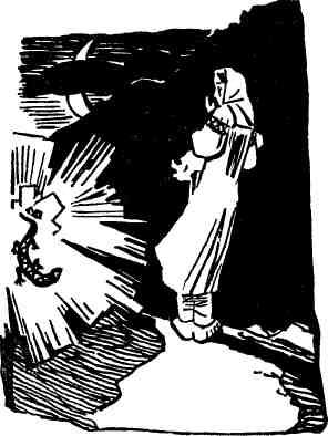 Нечего было делать Аниске, как завернуть младенца и пойти с ним на улку. Вышла она на крылечко, а уж темнеть стало. К осени дело подвигалось. Ненастье рано пришло, и темнеть начинало пораньше. Страшно ей в незнакомом месте показалось. Заплакала она с горя, а когда все слезы выплакала да к темноте пригляделась, вдруг зверушку какую-то заприметила. Вроде она светится. То подпрыгнет, то убежит вперед, то у ног Аниски потрется. Перестал плакать на руках у матери парнишка, можно бы и в балагушу пойти, да уж шибко заманила зверушка Аниску.
