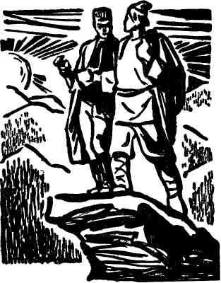 Кончил он беседу. Вышел из землянки на елань и вдруг увидал всадников незнакомых. Вот остановились они, с коней соскочили и к атаману смело подошли.