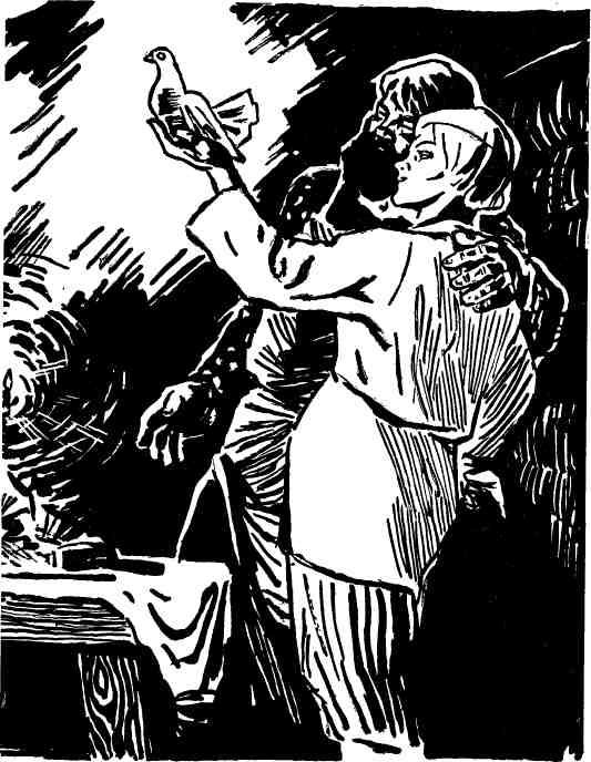 Ночью все заготовил: написал писульку, вложил в кольцо, надел его на голубя и ранним утром, когда еще город спал, птицу выпустил.