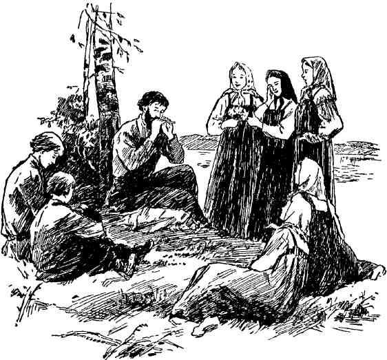 А Афоне только и надо. Сядет он на пенек у пруда, где всегда народ собирался, и начнет в свою дудку петь да играть. Поначалу тихонько, чуть слышно, а потом все сильней и сильней. Притихнет народ. Бередила людские сердца Афонина песня. Незаметно один начнет подпевать, за ним другой подхватит. Громче зазвучат голоса. Глядишь и могучая песня родится.