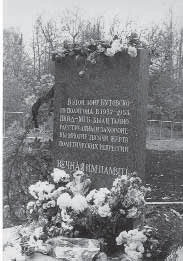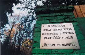 Московская область. Спецполигон НКВД «Коммунарка» Памятная доска на заборе спецполигона. Установлена в 1999 г. Фото П.Горшкова, 2000 г. (журнал «Итоги»)