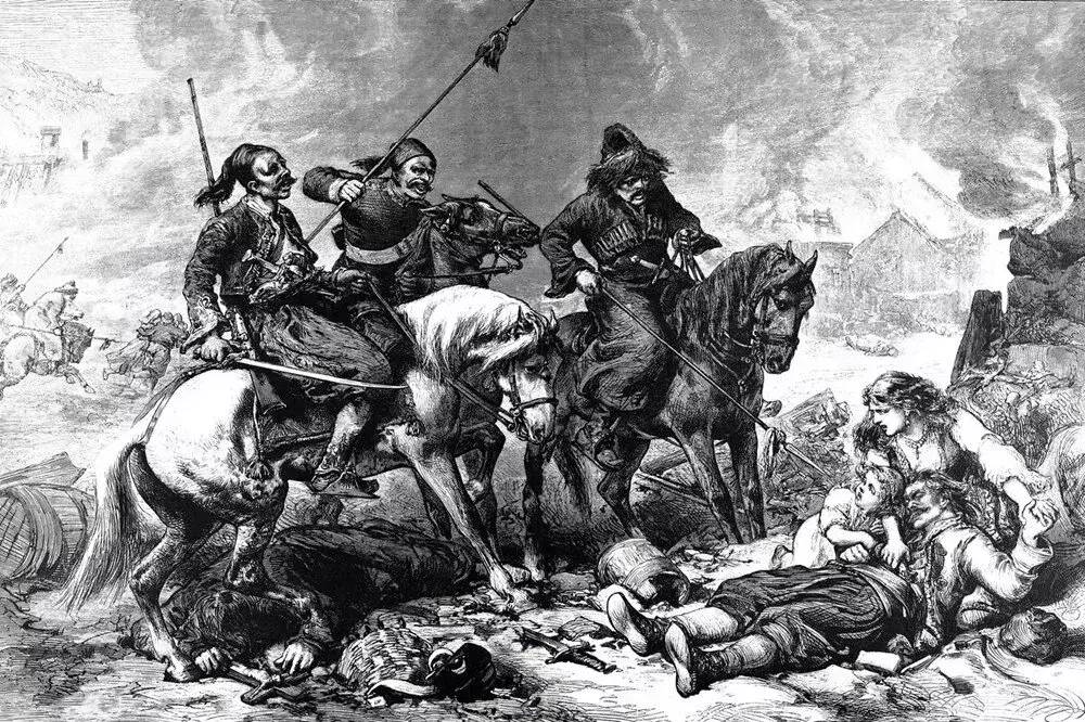 Зверства турок в Болгарии, журнальный рисунок.