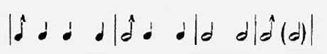 В угоду псевдо-музыке мы до сих пор коверкаем в читке античные (греческие и латинские) метры, как напр. гекзаметр (то-же напевный стих), исполняя его на 3/4 музыкального счета («вальс»), тогда, как он заведомо написан на 4/4 счета («марш»), исходя из четырех мор античной дактило-спондеической стопы.