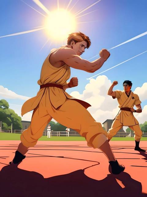 – Так, малышня, слышали, что сказала ваша глава? На сегодня хватит. В основную стойку! Руки выше! «Спасибо, учитель»! Хором, давайте!