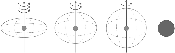 У любого объекта есть предельная скорость вращения. Например, скорость вращения на земном экваторе составляет примерно полкилометра в секунду. Если мы начнем раскручивать нашу планету все быстрее и быстрее, то в конце концов она начнет разрушаться. Скорость вращения на экваторе Солнца примерно в 10 раз больше, чем на экваторе Земли. Если Солнце заставить вращаться в сотни раз быстрее, то вещество начнет истекать с солнечного экватора. Это приведет к замедлению вращения. Возникает предельный период. Нельзя заставить Солнце вращаться с периодом около часа. Нейтронные звезды могут вращаться очень быстро, потому что они компактные и плотные. Для них предельный период составляет менее одной тысячной доли секунды. Это соответствует скорости примерно 1/5 от скорости света! Дальше даже такие компактные объекты начинают истекать.