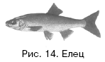 Елец (Leuciscus leuciscus)Елец, как и плотва, относится к наиболее известным рыбам отечественных водоемов. По внешнему виду он схож с голавлем и, возможно, с язем (рис. 14). Предпочитает свежую и чистую воду, поэтому его можно обнаружить в некрупных быстрых речках с чистой водой, после нормализации ее уровня. Стаи ельцов можно увидеть на течении над чистым песчаным дном, где рыба занимает места за неровностями дна, песчаными косами. В поисках пищи часто поднимается к поверхности воды.