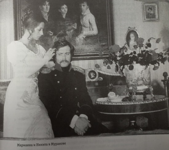 В этом мурановском доме мы в тот день начали с того, что стали готовить один из самых красивых кадров картины, который потом много раз повсюду воспроизводился. На стене, над диваном, висела большая картина, изображавшая Тютчева и его сестер в детстве, привезли роскошный букет свежайших алых роз, Марьяна, получившая в тот день двойку по английскому, была особенно томна, поскольку двойка грозила дальнейшему ее пребыванию на киноведческом факультете: мне предстояло что-то предпринять, чтобы ее немедленно не выперли из ВГИКа. Никита уже словно сросся со своим дивной красоты гусарским мундиром, повторю, не гусарским – в этом и была вся прелесть, – а армейским, офицерским, лермонтовским. Мы быстро сняли его кадр с Марьяной, начали репетировать следующий, где он вышвыривает смотрителя-Пастухова из передней. Отрепетировали – сняли первый дубль, второй… Все, хватит. Опять была легкая перебранка по поводу кодаковской пленки, которую, мол, я на Никиту жалею, а на Колю – нет. Никита вроде бы хотел третий дубль. Но тут снаружи постучали. Сначала мы подумали, что это дурит выкинутый по ходу съемки за дверь Пастухов. Но постучали еще раз, очень твердо и решительно, как Пастухов не умел.
