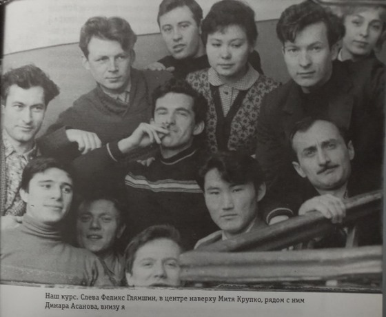 Наш курс. Слева Феликс Глямшин, в центре наверху Митя Крупко, рядом с ним Динара Асанова, внизу я