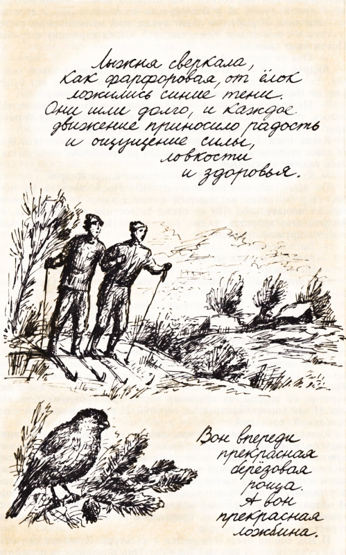 Лыжня сверкала, как фарфоровая, от елок ложились синие тени. Они шли долго, и каждое движение приносило радость и ощущение силы, легкости и здоровья. Наверное, есть такое чувство – чувство здоровья. Особенно в юности. Когда каждая мышца, каждая жилка отзывается солнцу, ветру. Когда ты счастлив только оттого, что живешь, двигаешься, дышишь.