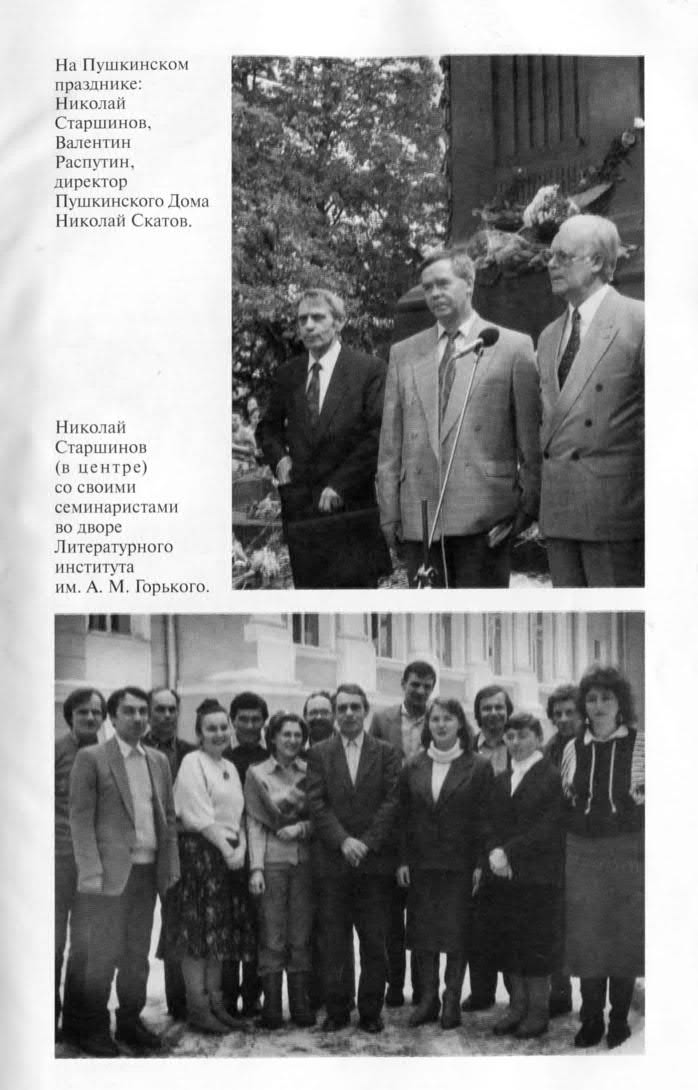 «Учась в Литературном институте имени Горького на семинаре прозы, я с большим удовольствием посещал и поэтические семинары, которые вел Николай Константинович Старшинов. Сам заядлый рыбак, я с детских лет знал наизусть такие стихотворения поэта, как «Притча о щуке и пескаре», «Ах, лесная речка Пудица…», «Вот камыш поднимает щетины…». Что же говорить о любви к рыбалке человека, их написавшего!