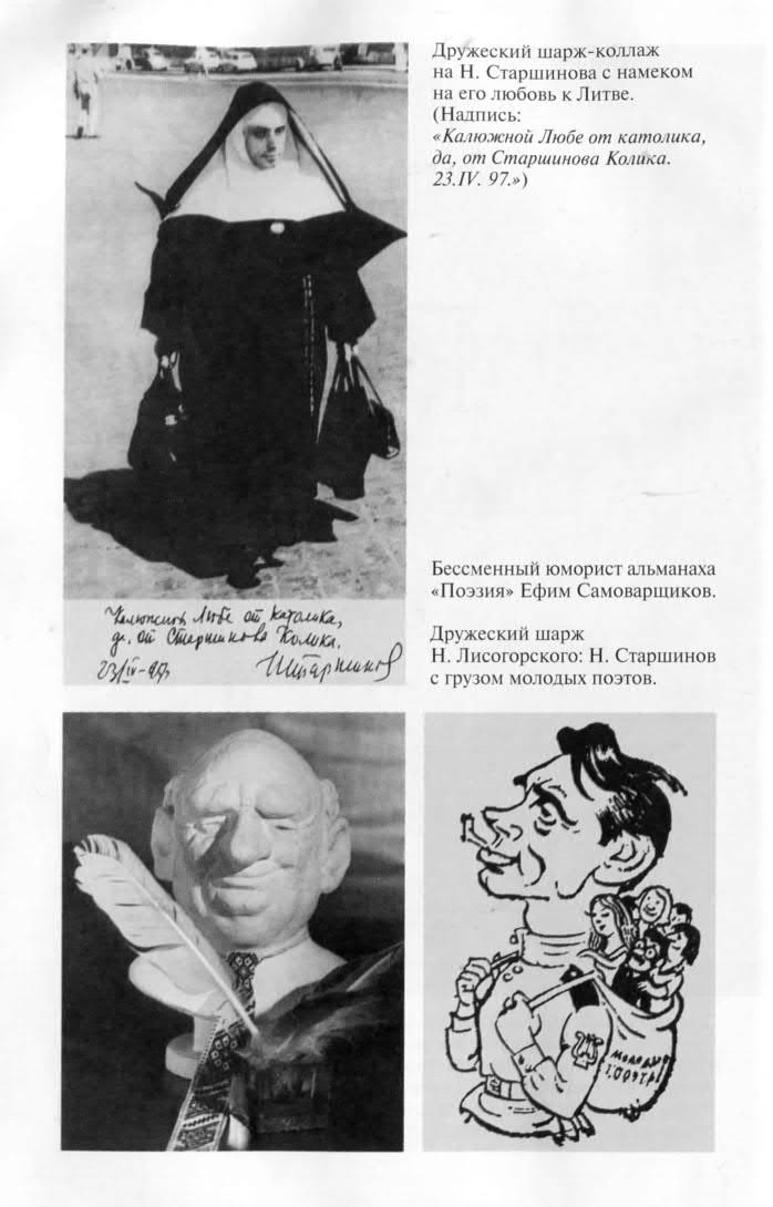 Приступив к изданию «Рыболовного альманаха», мы решили, что ни одна книга не выйдет без стихов и историй о рыбалке, написанных Николаем Старшиновым. Второй выпуск альманаха посвятили памяти поэта. А 22 марта 1998 года организовали на Истринском водохранилище соревнования по подледной ловле рыбы на блесну, которые назвали «Кубок Старшинова». Проводились соревнования по специально разработанным правилам «свободного поиска», которые в дальнейшем были утверждены Госкомспортом России. Среди рыболовов-блеснильщиков «Кубок Старшинова» завоевал огромную популярность и теперь ежегодно проводится на водоемах, которые так любил Николай Константинович».
