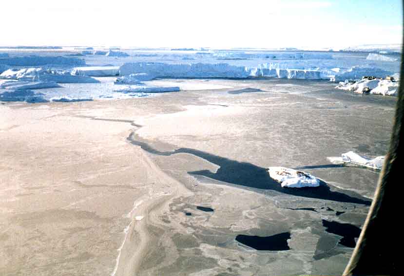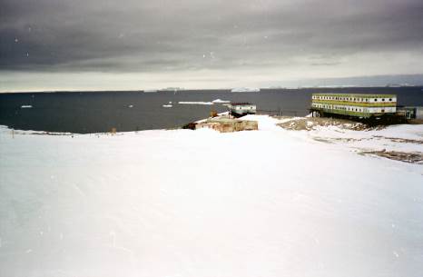 14 Марта 2003 г., Пятница. (69о19,84' ю.ш., 76о26,66' в.д.). Стоим в заливе Прюдс у станции Прогресс. 12:00. Судно: 0о, Ветер = 76о, V= 4 м/сек, Т воздуха = -2оС, Т воды = -2оС. С утра пасмурно, временами идет слабый снег. Прошли блинчатый лед. Серые блины, похожие на медуз, покрывали всю поверхность моря. Сначала «блины» были небольшого размера 10–15 см, но по мере приближения к берегу их размер постепенно увеличился до 50–70 см. Потом пошли обломки старого льда. Лед мы прошли в течение 10–15 минут и вошли в открытую воду, которая тянется до берега, что-то около 1 мили. Панорама вокруг очень красивая. По всему горизонту ледяной купол, под ним местами выходы коренных пород, а вокруг огромные ледяные айсберги. Часть айсбергов сидит на мели у берега, частично скрывая его от нас (и станцию тоже), часть, в самом заливе, окружая нас довольно плотным кольцом. Айсберги разнообразны по своим размерам, форме и даже цвету. Два ближайших и самых крупных – столовые айсберги с почти плоскими поверхностями и просвечивающим небесно-синим льдом. В основании одного из них образовалась целая галерея гигантских арок-пещер, результат работы морских волн. Чуть дальше, абсолютно белоснежный айсберг, сложенный как бы из отдельных глыб льда и напоминающий белоснежный фантастический город с замками и башнями. Еще дальше, тоже столовый айсберг, но потемнее, с вертикальными трещинами по всей толщине, и живописно наваленными глыбами льда наверху. Каждый из этих айсбергов настоящий гигант, по размерам превышающий наш Федоров в десятки и сотни раз. Встречаются более мелки, старые и размытые айсберги причудливой фантастической формы. Эти, как правило, более темные.