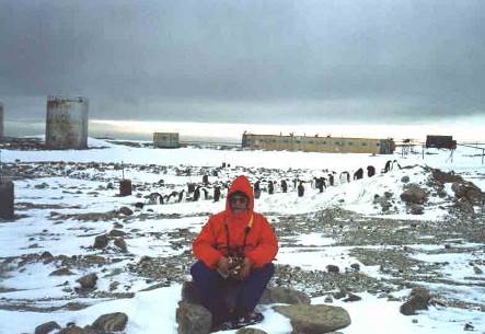 29. На фоне небольшой колонии пингвинов Адели и главного здания станции Молодёжная