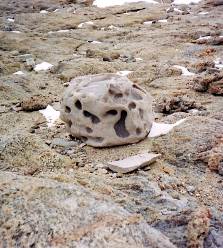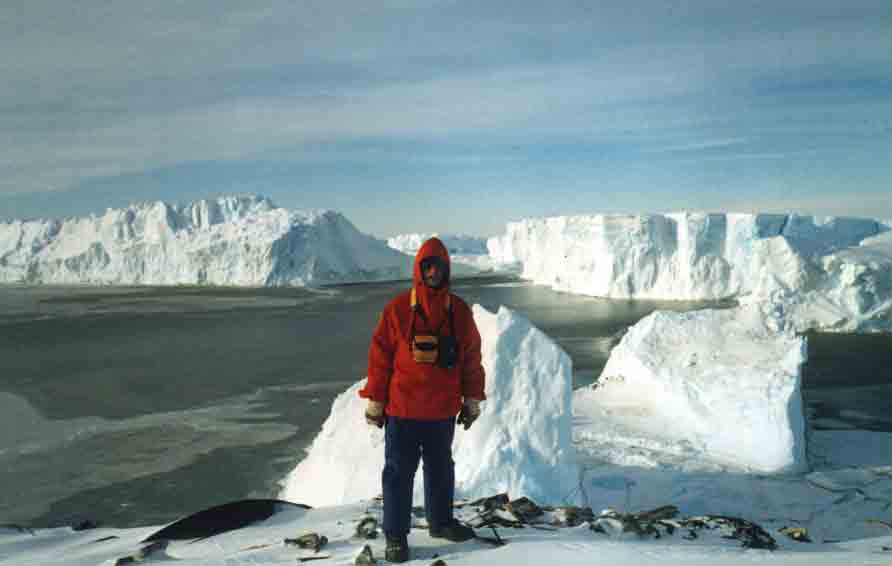8 Апреля 2003 г., вторник, 9:00, (63о40,71’S; 82o32,30’E, гл. 3367 м.). Судно: 260о, 15,7 узлов. Ветер 56о; скорость 10,5 м/сек, Т воздуха = – 2,5оС, Т воды 0оС Р= 972 НРА. Погода улучшилась, скорость ветра уменьшилась, а температура воздуха и воды заметно повысились. Переменная облачность, иногда проглядывает солнце. Идем по чистой воде, волнение около 2-х баллов. Как всегда, судно облетают поморники и буревестники в поисках поживы. Сегодня опять приступили к регулярному отбору поверхностных проб воды на ходу судна полиэтиленовым ведром. На горизонте с обоих бортов видны одиночные айсберги. Здесь они уже подверглись длительной ветровой и волновой обработке и приобрели вычурные формы. Вот только несколько из них: два паруса вместе, как на двухмачтовом судне; ледяной замок с тремя башнями; спина огромного белого кита или атомная подводная лодка со спиленной надстройкой; отдыхающая на солнце огромная ящерица игуана с растопыренными щитками за головой; речная баржа с надстройкой на корме и т. д. Одним словом, что ни айсберг, то творение скульптора. Размеры айсбергов зачастую поражают всякое воображение. Самые большие из встреченных нами в этой экспедиции айсбергов достигали по моим оценкам несколько сотен метром и даже километры в длину. И это далеко не предел. Гигантский айсберг, занесенный в книгу рекордов Гиннеса был зафиксирован в 80-х годах прошлого столетия судном США в 150 милях от о-ва Скотта и имел размеры: 396 х 111 км! Айсберг размером 160 х 172 км, отколовшийся в 1964 г. от шельфового ледника Эймери просуществовал более 15 лет, до-дрейфовал в 50-е широты, где разрушился в 1979 г. Обнаруженный в 1924 г. айсберг длиной 120 км и высотой 90 м (можно представить себе его общую высоту, если учесть, что две трети айсберга располагается под водой) дрейфовал 10,5 лет за пределами Антарктики. По подсчетам, средняя скорость дрейфа айсбергов составляет 0,36-0,38 км в сутки.