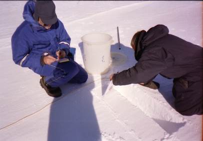 После обеда к нам подошла Инна и попросила отобрать напоследок пробы блинчатого льда и подледной воды, что я и сделал, чуть не отморозив себе руки, т. к. взял тонкие тряпочные перчатки, а вода, все-таки, – 2оС и чтобы заполнить бак, отбирать лед пришлось минут 20 при помощи плоской металлической сетки, обычно используемой морскими химиками для сбора верхней тонкой пленки морской воды. Блинчатый лед мы до сих пор не отбирали, не было удобного случая.