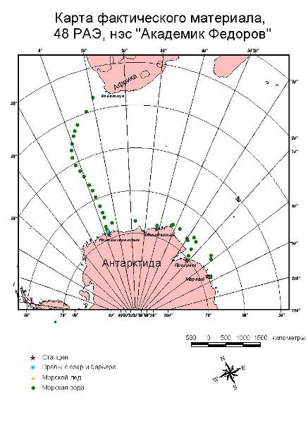 9 Апреля 2003 г., среда, 10:00, (64о23,42’S; 68o30’E, гл. 3200 м.). Судно: 276о, 14,3 узлов. Ветер 259о; скорость 12 м/сек, Т воздуха = – 6оС, Т воды – 1,4оС Р= 987 НРА. Облачно с прояснениями. На горизонте, кое-где видны редкие айсберги. С утра ветрового волнения практически не наблюдалось. Однако была сильная зыбь (2–3 м). Судно шло лагом к волне и всю ночь переваливалось как утка. Примерно к 9 часам посвежело и на зыбь стала накладываться ветровая волна в 2–3 балла. Механики разворотили всю нашу фильтрационную лабораторию. Вчера засорился расположенный по соседству туалет и починка его каким-то образом связана с разгромом нашей лаборатории. По последним сведениям о нашей дальнейшей судьбе мы все идем в Европу, а из Кейптауна, кроме летчиков улетят всего человека четыре, которым действительно нужно и за которых заплатят их компании.