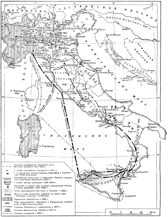 Но это не была та Италия, за которую много десятилетий боролись Мадзини и Гарибальди, все итальянские патриоты. Итальянская буржуазная революция осталась незавершенной. Италия стала конституционной монархией, закрепившей блок обуржуазившихся помещиков с крупной буржуазией. После объединения в стране сохранились феодальные пережитки, крупные помещичьи латифундии и бесправие народа. В объединенной Италии из 27-миллионного населения правом голоса пользовались немногим более полумиллиона человек. Реакционные черты итальянского государства явились тормозом в экономическом развитии страны, они препятствовали и политическому прогрессу и переходу к демократии.