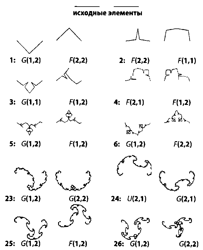 Представим себе, что правила преобразования V типовых «генов» описывают V систем итерируемых функций. В первом поколении возникнет V типов ветвей – аттракторов. На втором шаге мы будем применять те же V систем итерируемых функций к точкам сформировавшихся аттракторов. Если каждую из V систем итерируемых функций применить к точкам аттракторов, образованных этой системой на предыдущем шаге, то второе поколение будет повторять первое поколение. Однако, если мы случайным образом перетасуем системы итерируемых функций и применим их к «чужим» аттракторам, то получим новое разнообразие из V типов аттракторов. Однако самое замечательное то, что после многочисленных итераций вне зависимости от набора типовых «генов» мы получим своего рода аттрактор аттракторов – суперфрактал.