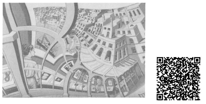 Иллюстрация эффекта Дросте на примере видеоинтерпретации картины Эшера Galeria degrabados, 1956