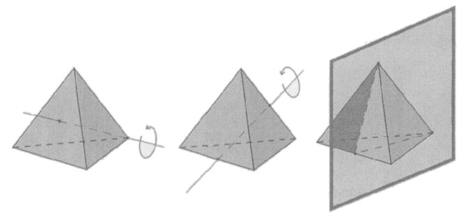 Симметрии тетраэдра: 8 поворотов относительно вершины; 3 поворота относительно середин сторон ребер; 12 отражений.