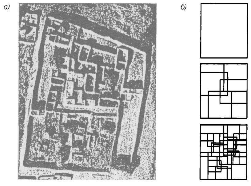 План города Лагун-Бирни (Logone-Birni) в Камеруне (а), первые три итерации фрактальной модели Лагун-Берни (б)