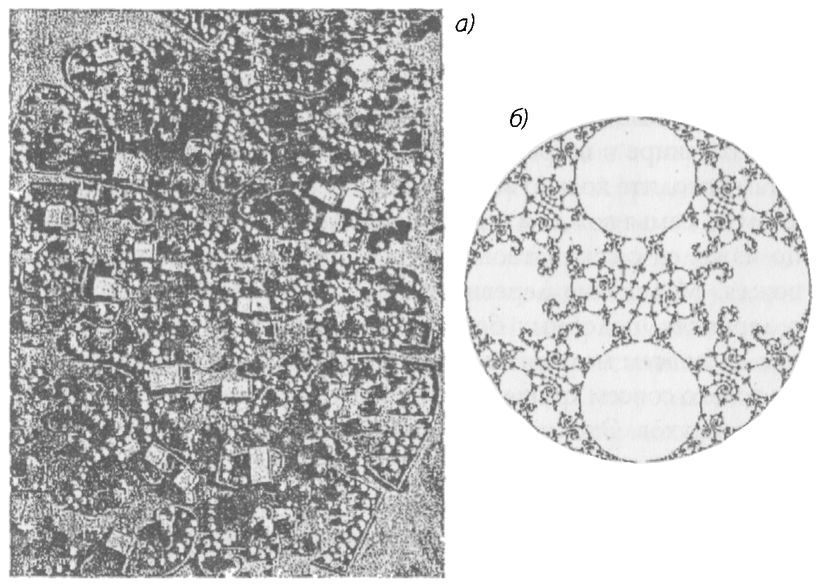 Лаббезанга (Labbezanga) в Мали. Вид с высоты птичьего полета (а), фрактальный аналог (б)