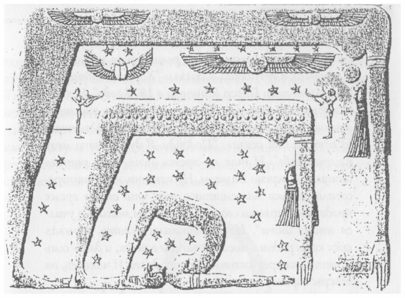 Доктор Рон Эглеш обнаружил фракталы не только в африканской архитектуре, но и во всех слоях африканской культуры. Идея единства и вложенности пронизывает культуру африканского континента с доисторических времен. Быть может, самое сильное выражение этого принципа мы обнаруживаем в рекурсивных повторах космологических мифов Древнего Египта. Посмотрите на рисунок, заимствованный из работы Фурье 1821 года. Здесь богиня Земли Геба в окружении бога воздуха Шу заключена в оболочку божественного небосвода – Нут.