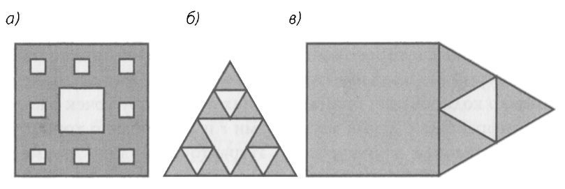 «Ковры Серпинского»: а – квадратный; б – треугольный; в – мультифрактальная фигура