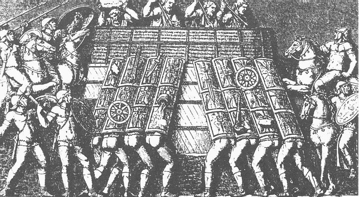 [Закрыть]. Один из римских дипломатов при дворе Аттилы встретился там с соотечественником-эмигрантом, который расхваливал ему общественные порядки гуннов и даже не думал о возвращении на родину (главным социально-экономическим благом в Гуннской империи было отсутствие налогов: грабежи и контрибуции с лихвой покрывали издержки и нужды двора Аттилы). При осаде городов гунны с успехом использовали сложные военно-инженерные сооружения и стенобитные машины.