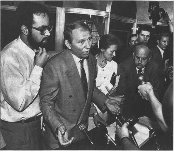 95. Леонид Кучма на первой пресс-конференции в качестве президента. Слева – глава Администрации президента Дмитрий Табачник