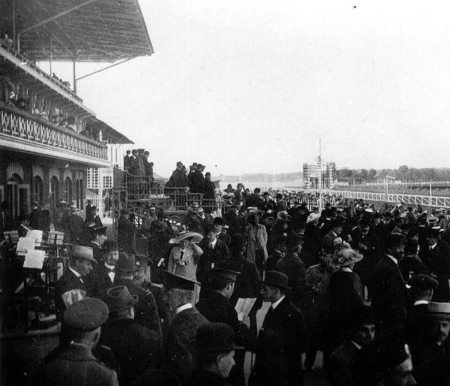 «Удельный ипподром принарядился и приукрасился, – сообщал журнал „Спорт“ об открытии скакового сезона. – Публика приливает широкой волной, проникает через турникеты и разливается по трибунам и ложам. В трибунах тесная толпа зрителей, а навстречу эффектно глядят два ряда лож с нарядными и хорошенькими женщинами. Красивую картину представляет эта разряженная жизнерадостная толпа, среди которой много дам в цветных туалетах. Кто явился полюбоваться лихой скачкой любимых ездоков-охотников, поглядеть на кровных скакунов, а кто пришел попытать счастья в игре на тотализаторе».