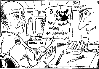– Да вот, полюбуйтесь, – Ступорс пододвинул ему усеянный кляксами клочок бумаги. На нем корявыми печатными буквами была выведена какая-то запись (* см. рисунок на копии газетной страницы).