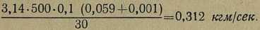 Пример. Модель паровой машины локомобиля при числе оборотов, равном 500, уравновешена при помощи тормоза Прош при весе гирек, равном 59 г. Так как I у нас постоянно и равно 0,1 м, а вес рычага равен 1 г, то пишем: