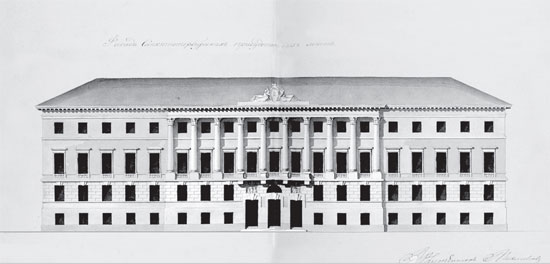 Фиксационный чертеж (начала 1840-х гг.) фасада особняка И. Ф. Фитингофа.