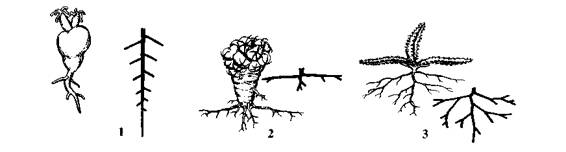 Рис.3. Вертикальный (1), горизонтальный (2) и смешанный (3) тип корневой системы (по Brehme).