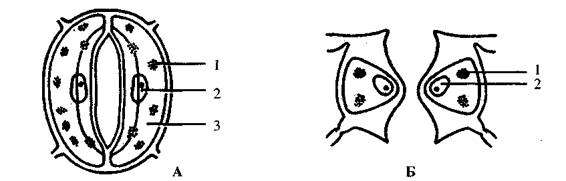 Рис.13. Схема строения устьиц (А) и поперечный разрез устьичной щели (Б): 1. хлоропласты ;
