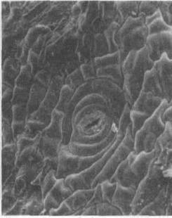 По поверхности стебля разбросаны крошечные отверстия—устьица, через которые происходит газообмен и испарение воды—транспирация. Количество устьиц на 1 мм2довольно велико, в среднем около 40*, что объясняется необходимостью обеспечения полного газообмена в клетках запасающей ткани. При этом наблюдается закономерность: чем толще запасающая ткань, тем больше устьиц, с одной стороны, и чем больше устьиц, тем тоньше и эластичнее эпидермис.