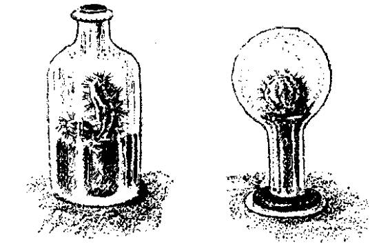 Н.Верзилин в своей книге «Путешествие с домашними растениями», изданной в 1954 году приводит рисунки, иллюстрирующие методику содержания кактусов в замкнутых стерильны> условиях, в субстрате, где уничтожена вся микрофлора. Как и в опытах с сеянцами, здесь следуеп отметить, что хотя в первое время эти растения будут активно наращивать биомассу, в основном из-за большего обводнения тканей во влажных условиях «микрооранжерейки», однако постепенно их рост будет замедляться и они значительно отстанут от аналогичных кактусов содержащихся в открытой среде. Если же периодически добавлять (например, с помощью шприца) в субстрат находящийся в замкнутом сосуде низкомолекулярные органические вещества – ростовые процессы будут проходить с нормальной скоростью. Именно поэтому в гидропонной культуре в питательный раствор добавляют такие низкомолекулярные соединения, как глюкозу, мезоинозит, витамины гормоны и т.п.