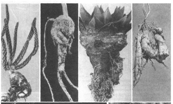 Формы корней многообразны: шнуровидные, бичевидные, конусовидные, веретеновидные, реповидные, клубневидные и т.д. По отношению к субстрату – подземные и воздушные.