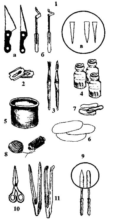 Рис.76. Набор инструментов для прививки: